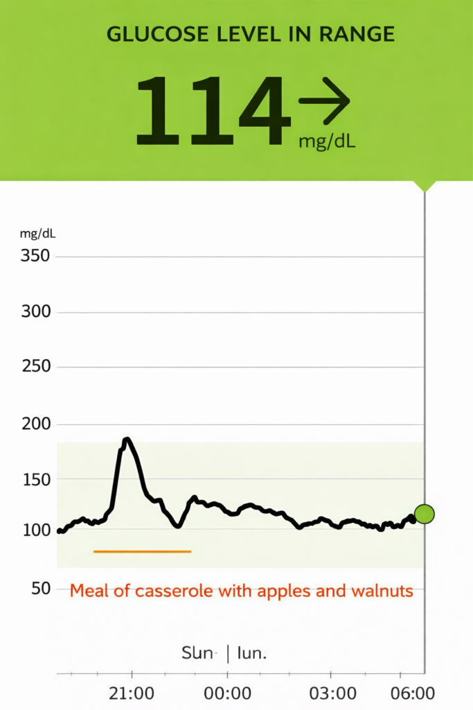 As can be seen in diagram 2, there is no problematic evolution of blood sugar, and the sugar shot is managed in just one hour.